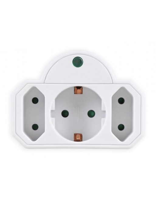 Αντάπτορας ρεύματος Powertech 3 θέσεων, 1x schuko και 2 διπολικών, με μηχανισμό ασφαλείας για παιδιά και προστασία υπέρτασης.