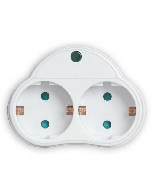 Αντάπτορας ρεύματος Powertech 2 θέσεων schuko, με μηχανισμό ασφαλείας για παιδιά και προστασία υπέρτασης.
