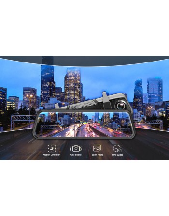 Η μεγάλη οθόνη αφής 10" παρέχει ευκρινή εικόνα χάρη στην υψηλή ανάλυση των δύο καμερών. Μέσω της οθόνης αφής οι λειτουργίες γίνονται εύκολα και γρήγορα ενώ παρέχει την δυνατότητα αναπαραγωγής των εγγεγραμένων βίντεο. Στην συσκευασία συμπεριλαμβάνεται φορτιστής USB, ο οποίος υνδέεται στον αναπτήρα του αυτοκινήτου.