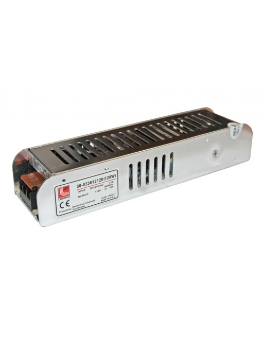 Τροφοδοτικό DC αλουμινίου mini 120W για ταινίες LED της ADELEQ. Διαθέτει προστασία από υπερφόρτωση, βραχυκύκλωμα και υπερθέρμανση.
