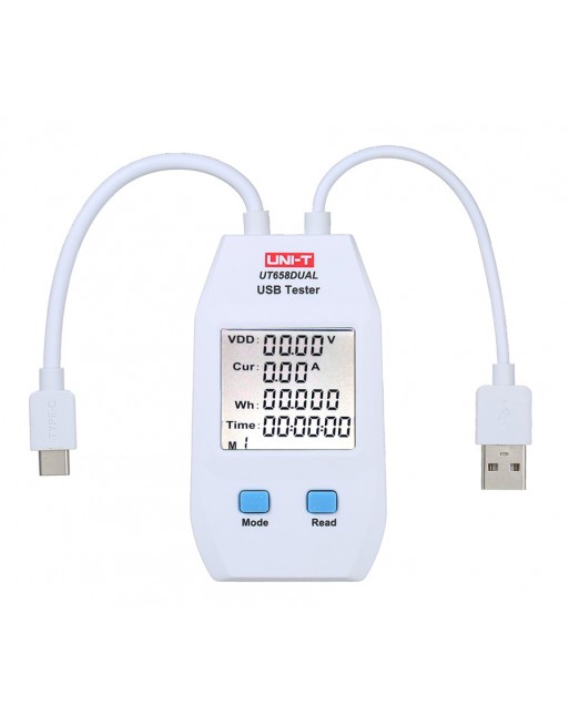 Οι συσκευές έλεγχου καλωδιώσεων USB δεύτερης γενιάς της σειράς UT658 μπορούν να ελέγξουν φορτιστές USB, φορητές πηγές τροφοδοσίας, καλώδια USB τύπου A και C και άλλες ηλεκτρονικές συσκευές φόρτισης. Το UT658DUAL μετρά τάση εξόδου, ρεύμα, ενέργεια, χωρητικότητα, αντίσταση ισοδύναμου κυκλώματος, D + και D- τάσεις δεδομένων καλωδίων USB. Αυτή η σειρά έχει σχεδιαστεί για να είναι ακριβής, αξιόπιστη, σταθερή και φορητή. Είναι εξαιρετικά εργαλεία για εφαρμογές όπως επαλήθευση κατασκευής, δοκιμές εφαρμοσμένης μηχανικής και DIYers.
