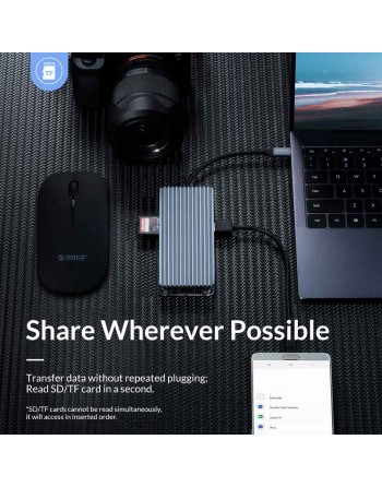 ORICO docking station WB-8P, USB Type-C, 8-ports, γκρι