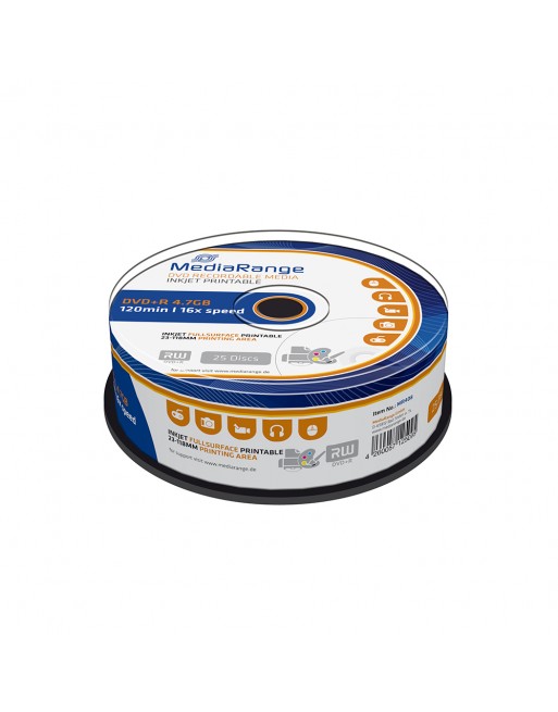 MediaRange DVD+R 4.7GB|120min 16x speed, inkjet...