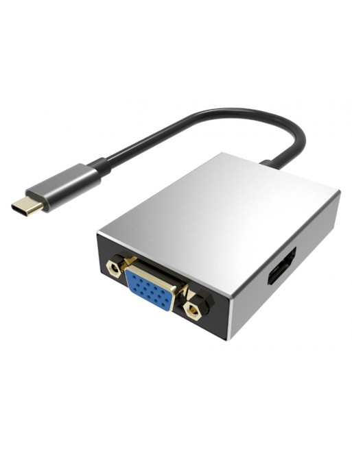 POWERTECH converter Type-C σε VGA/HDMI PTH-050, με USB 3.0, γκρι