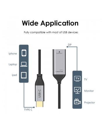 CABLETIME αντάπτορας USB-C σε DisplayPort C160, 4K/60HZ, 0.15m, μαύρος