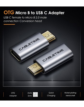 CABLETIME αντάπτορας OTG USB Type-C σε USB 2.0 Micro B C160, γκρι