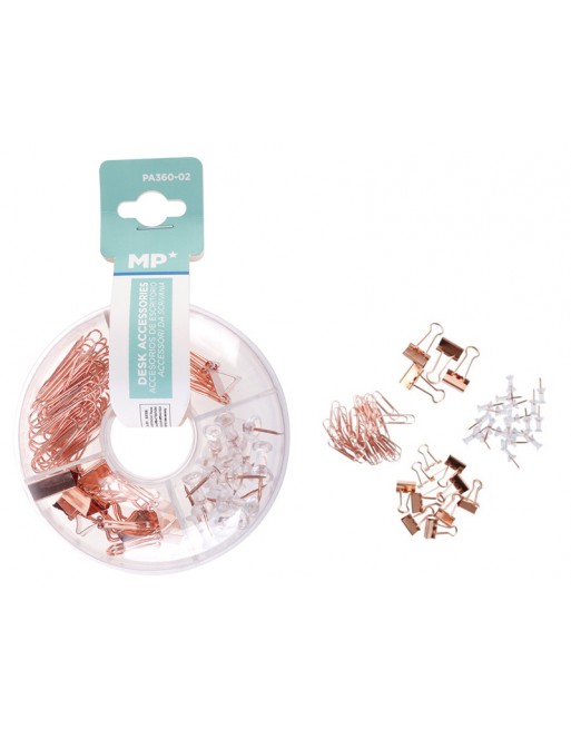 MP σετ γραφείου PA360-01 με συνδετήρες και κλιπ, ροζ χρυσό