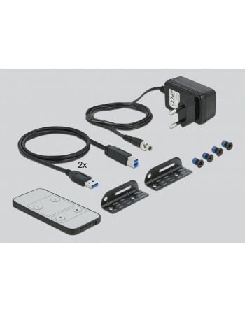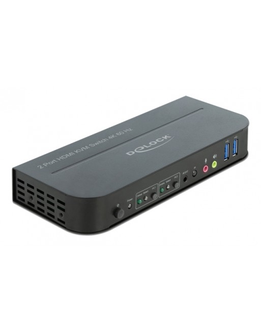 Το HDMI KVM Switch της Delock αποτελεί μια εύκολη λύση για τη σύνδεση δύο υπολογιστών με καλώδιο εξαγωγής HDMI σε μια οθόνη HDMI. Επιπλέον, διαθέτει δύο θύρες USB 2.0 για σύνδεση με ποντίκι και πληκτρολόγιο και δύο θύρες USB 3.0 για σύνδεση με σκληρό δίσκο ή κάρτα μνήμης USB. Ο ενεργός υπολογιστής μπορεί να επιλεχθεί με το ποντίκι, με το πληκτρολόγιο, με κουμπί στη συσκευή ή με τηλεχειριστήριο υπερύθρων.