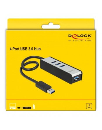DELOCK hub 4x USB 62534, USB 3.0, 5Gbps, 30cm, μαύρο-γκρι