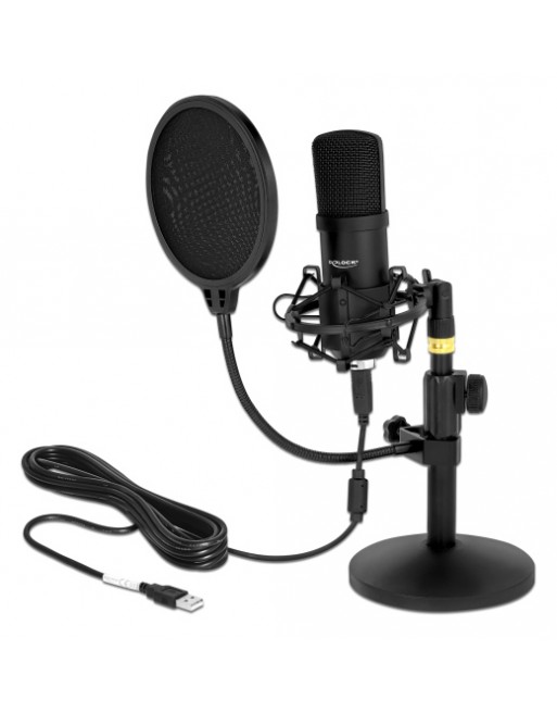 DELOCK μικρόφωνο studio με pop φίλτρο & αντιανέμιο 66300, πυκνωτικό, USB