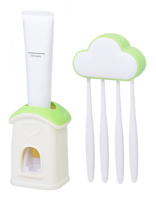 ECOCO Διανεμητής οδοντόκρεμας και βάση οδοντόβουρτσας E1604, πράσινος-μπεζ