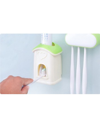 Αυτόματος διανεμητής οδοντόκρεμας και βάση για 4 οδοντόβουρτσες της Ecoco, ιδανικός για οικογένειες με μικρά παιδιά. Τοποθετούνται εύκολα στον τοίχο με αυτοκόλλητα κλιπ. Τα αυτοκόλλητα κλιπ μπορούν να αποσπαστούν από την διανεμητή, διευκολύνοντας τον καθαρισμό του.