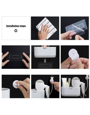 Βάση της Ecoco με μια θήκη για οδοντόβουρτσες, οδοντόκρεμες ή αλλά μικρά αντικείμενα υγιεινής και μια θήκη για σεσουάρ μαλλιών με γάντζο για το καλώδιο. Διαθέτει μοντέρνο σχεδιασμό ενώ η τοποθέτηση της γίνεται εύκολα με αυτοκόλλητο κλιπ σε οποιαδήποτε επίπεδη επιφάνεια.