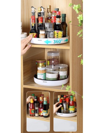 Επιτραπέζια βάση κουζίνας της Ecoco με περιστροφή 360°. Στην βάση μπορείτε να τοποθετήσετε μπουκάλια, βάζα, φρούτα κ.α. ενώ η τοποθέτηση της μπορεί να γίνει σε οποιαδήποτε επιτραπέζια επιφάνεια, μέσα σε ντουλάπι ή ράφι. Η περιστροφή 360° της βάσης, σας δίνει την δυνατότητα να επιλέγετε τα ρέοντα που επιθυμείτε, είτε αυτά βρίσκονται στο μπροστινό, είτε στο πίσω μέρος της βάσης χωρίς να χρειάζεται να μετακινήσετε τα υπόλοιπα προϊόντα. Το κάτω μέρος της βάσης είναι σχεδιασμένο με αντιολισθητικό υλικό εξασφαλίζοντας την σταθερότητα της κατά την διάρκεια της περιστροφής.