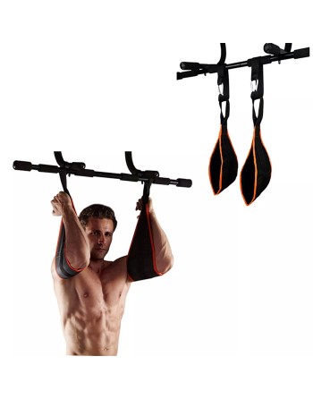 Ιμάντες με 2 γάντζους ασφάλειας που σας επιτρέπουν να πραγματοποιήσετε ασκήσεις εκγύμνασης των κοιλιακών μυών. Μπορούν να τοποθετηθούν εύκολα σε μονόζυγο πόρτας ή μηχανήματος γυμναστικής.