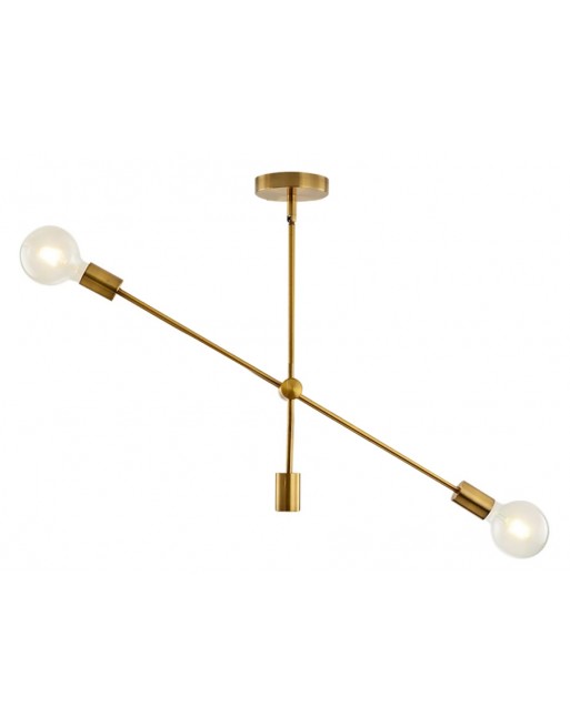 Φωτιστικό οροφής με μεταλλικό σώμα και 2x ντουί τύπου E27 που επιδέχεται λάμπες έως 40W. Διαθέτει σώμα σε οριζόντια θέση και κρέμεται από την οροφή με βάση που είναι ξεχωριστή από το κυρίως φωτιστικό, με αποτέλεσμα η τοποθέτηση του να είναι ιδιαίτερα εύκολη και ακριβής. Η κατασκευή διακρίνεται για την ποιότητα της και το λεπτεπίλεπτο φινίρισμα της που ολοκληρώνεται από την ποιοτική βαφή χρυσού χρώματος.