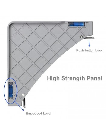 Διαθέτει 4 τροχούς με φρένα ακινητοποίησης, 4 ποδαράκια ρυθμιζόμενου ύψους και αλφάδι για την διευκόλυνση της τοποθέτησης των αντικειμένων.