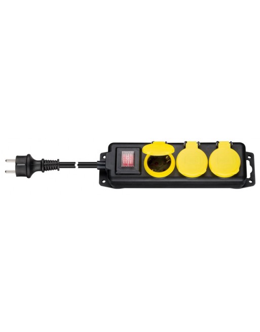 Υψηλής ποιότητας πολύπριζο με αδιάβροχη προστασία IP44, κατάλληλο για εξωτερική χρήση. Διαθέτει 3 υποδοχές ασφαλείας schuko με προστατευτικά καλύμματα και διακόπτη On/Off.