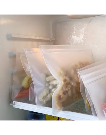 Σετ επαναχρησιμοποιούμενες αεροστεγείς σακούλες τροφίμων, κατασκευασμένες από υλικό EVA κατάλληλο για τρόφιμα, χωρίς PVC, χωρίς μόλυβδο, χωρίς χλώριο και χωρίς BPA. Είναι ιδανικές για τρόφιμα, σνακ, σάντουιτς, υγρά τρόφιμα αλλά ακόμη και για αξεσουάρ ή καλλυντικά ταξιδίου. Το σετ περιλαμβάνει 2 σακούλες μεγέθους 21.5 x 18cm και 2 σακούλες μεγέθους 26 x 20cm.