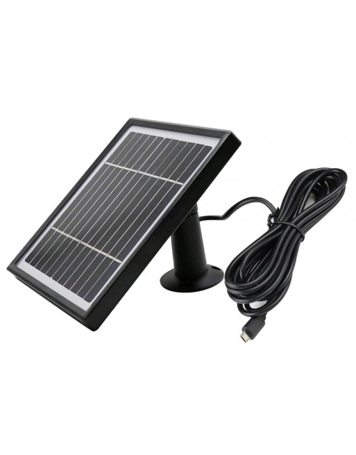 Ηλιακό πάνελ ισχύς 3,3W της Innotronic με βάση τοποθέτησης και καλώδιο Micro USB για την φόρτιση συσκευών όπως κάμερες που λειτουργούν με επαναφορτιζόμενες μπαταρίες.
