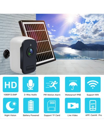 Ασύρματη ηλιακή κάμερα της Innotronic εξωτερικού χώρου με διακριτική και μοντέρνα εμφάνιση. Μπορεί να μεταφέρει εικόνα ανάλυσης 1080p και υποστηρίζει σύνδεση με Wi-Fi. Η συσκευή διακρίνεται για την πολύ εύκολη και γρήγορη εγκατάσταση της καθώς και τον απροβλημάτιστο χειρισμό της από συσκευή smartphone απομακρυσμένα μέσω της εφαρμογής CamHipro. Η κάμερα διαθέτει αμφίδρομη μεταφορά ήχου ενώ μπορεί επίσης να εντοπίζει ανθρώπινη σιλουέτα και κίνηση. Υποστηρίζει λειτουργία νυχτερινής όρασης για την παρακολούθηση ακόμη και στο σκοτάδι και τα βίντεο που καταγράφονται αποθηκεύονται εσωτερικά σε micro SD (δεν συμπεριλαμβάνεται). Τροφοδοτείται από μπαταρία τύπου 18650 (δεν συμπεριλαμβάνεται) η οποία επαναφορτίζεται μέσω καλωδίου USB ή με ηλιακή ενέργεια χάρη στο ηλιακό πάνελ.