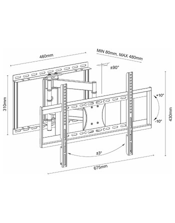 Επιτοίχια βάση στήριξης με 2 βραχίονες και ρύθμιση κλίσης, για τηλεοράσεις LED/LCD από 42" έως 75".