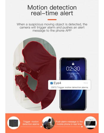 Ασύρματη mini WiFi κάμερα της Vstarcam με διακριτική και μοντέρνα εμφάνιση. Διαθέτει αισθητήρα ανάλυσης 2MP και μπορεί να μεταφέρει εικόνα ανάλυσης HD ενώ εξοπλίζεται και με υψηλής ποιότητας μικρόφωνο που επιτρέπει την αμφίδρομη μεταφορά φωνής και ήχου. Η συσκευή διακρίνεται για την πολύ εύκολη και γρήγορη εγκατάσταση της καθώς και τον απροβλημάτιστο έλεγχο της από συσκευή smartphone απομακρυσμένα μέσω της εφαρμογής Eye4. Η σύνδεση της γίνεται μέσω WiFi και μπορεί να εντοπίζει ανθρώπινη σιλουέτα και κίνηση και να ειδοποιήσει τον ιδιοκτήτη με push notifications απευθείας στο κινητό, χρησιμοποιώντας τεχνολογία ΑΙ αναγνώρισης ανθρώπων. Πολύ σημαντικό πλεονέκτημα για χώρους εργασίας είναι η λειτουργία "απουσίας" που μπορεί να ειδοποιεί όταν κάποιος απομακρυνθεί και επιστρέψει στην θέση εργασίας του. Η κάμερα υποστηρίζει λειτουργία νυχτερινής όρασης, για την παρακολούθηση ακόμη και στο σκοτάδι, εντοπισμό καπνού και μπορεί να ελέγχει τον χώρο του παιδικού δωματίου για να εντοπίσει το κλάμα του μωρού. Τα βίντεο που καταγράφονται αποθηκεύονται εσωτερικά σε micro SD ή απευθείας σε λογαριασμό στο cloud.