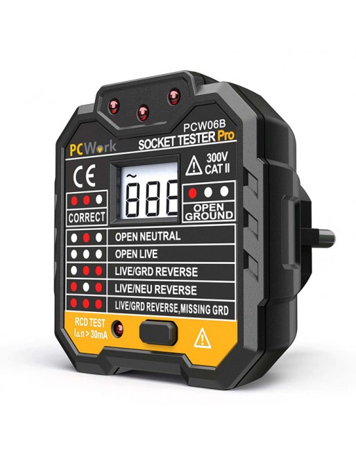 Το socket tester PCW06B επιτρέπει τον εύκολο και ασφαλή έλεγχο για τη σωστή καλωδίωση των ηλεκτρικών πριζών. Διαθέτει τυπικό ευρωπαϊκό βύσμα Schuko και μπορεί επίσης να χρησιμοποιηθεί σε FI διακόπτες μέσω της λειτουργίας δοκιμής RCD.
