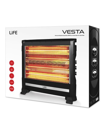 H επιβλητικών διαστάσεων θερμάστρα χαλαζία LIFE VESTA, έχει μεγάλη εμβέλεια θέρμανσης, 4 μεγάλες θερμαντικές λάμπες μήκους 58εκ. η κάθε μία και επιτυγχάνει άμεση απόδοση θερμότητας στον χώρο σας.