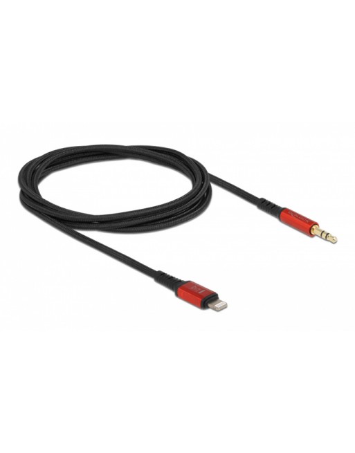 DELOCK καλώδιο Lightning σε 3.5mm 86587, 30AWG, 1.5m, μαύρο-κόκκινο