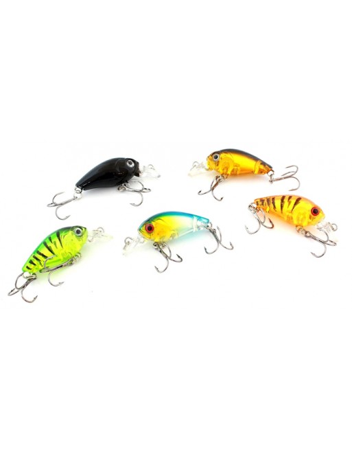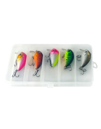 Κασετίνα με 5 τεχνητά ψάρια-δολώματα για το ψάρεμα αρπακτικών ψαριών. Το κάθε ένα από αυτά έχει διαφορετικά χρώματα και είναι προσαρμοσμένο στις προτιμήσεις συγκεκριμένων ψαριών. Έχουν ζωηρά χρώματα και κουδουνίστρες για την προσέλκυση των ψαριών.