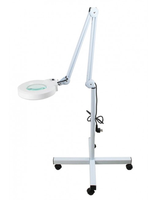 Επαγγελματικός μεγεθυντικός φακός έως 5 DPI (διόπτρα) με λάμπα έως, ιδανικός για σαλόνια ομορφιάς, οδοντιατρικές κλινικές, αλλά και για εργασίες ηλεκτρονικών, μηχανικών και όχι μόνο. Μπορεί να κινηθεί πλήρως χάρη στις τέσσερις ρόδες κάτω από την βάση, ενώ είναι επίσης εξοπλισμένη με ρυθμιζόμενο βραχίονα με πρόσθετο εσωτερικό βραχίονα που διευκολύνει την εύκολη τοποθέτηση του λαμπτήρα. Η συσκευή είναι εξαιρετικά σταθερή και ταυτόχρονα λειτουργική, μπορεί να ρυθμιστεί σχεδόν σε οποιαδήποτε γωνία και επιπλέον, είναι δυνατή η ακινητοποίηση του λαμπτήρα στην επιθυμητή θέση. Η χρήση μεγεθυντικού φακού επιτρέπει τη λεπτομερή προβολή της φωτιζόμενης περιοχής και εγγυάται άριστες συνθήκες φωτισμού κατά των αισθητικών επεμβάσεων ή άλλων εργασιών.