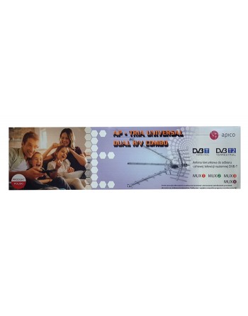 Εξωτερική directional κεραία ANT0006 της Apico για τη λήψη ψηφιακού επίγειου σήματος DVB-T σε ζώνη VHF-UHF. Η δομή της κεραίας επιτρέπει την κάθετη και οριζόντια εγκατάσταση.