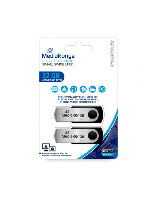 MediaRange USB flash drives, 32GB, Pack 2 (MR911-2)